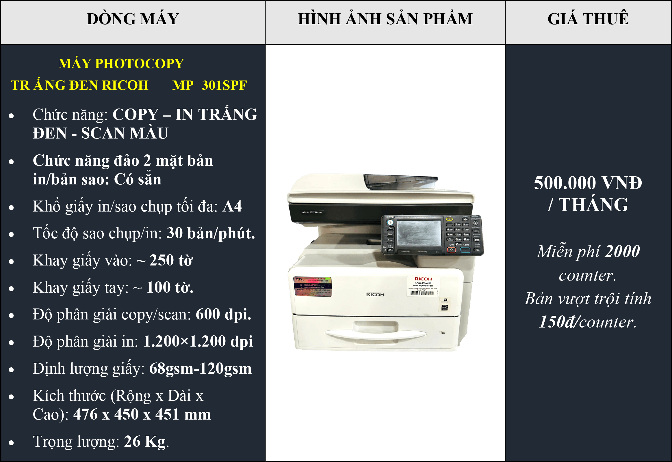 Cho Thuê Máy Photocopy Trắng Đen Ricoh Mp 301spf
