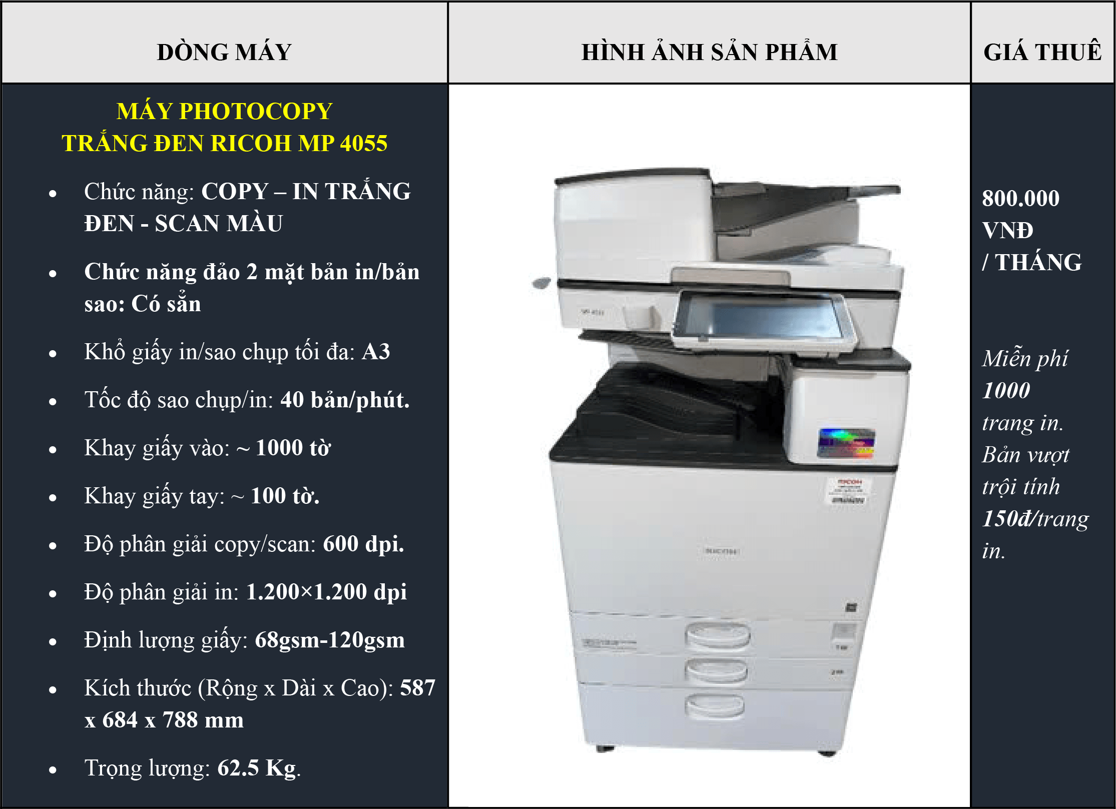 Cho Thuê Máy Photocopy Trắng Đen Ricoh Mp 4055