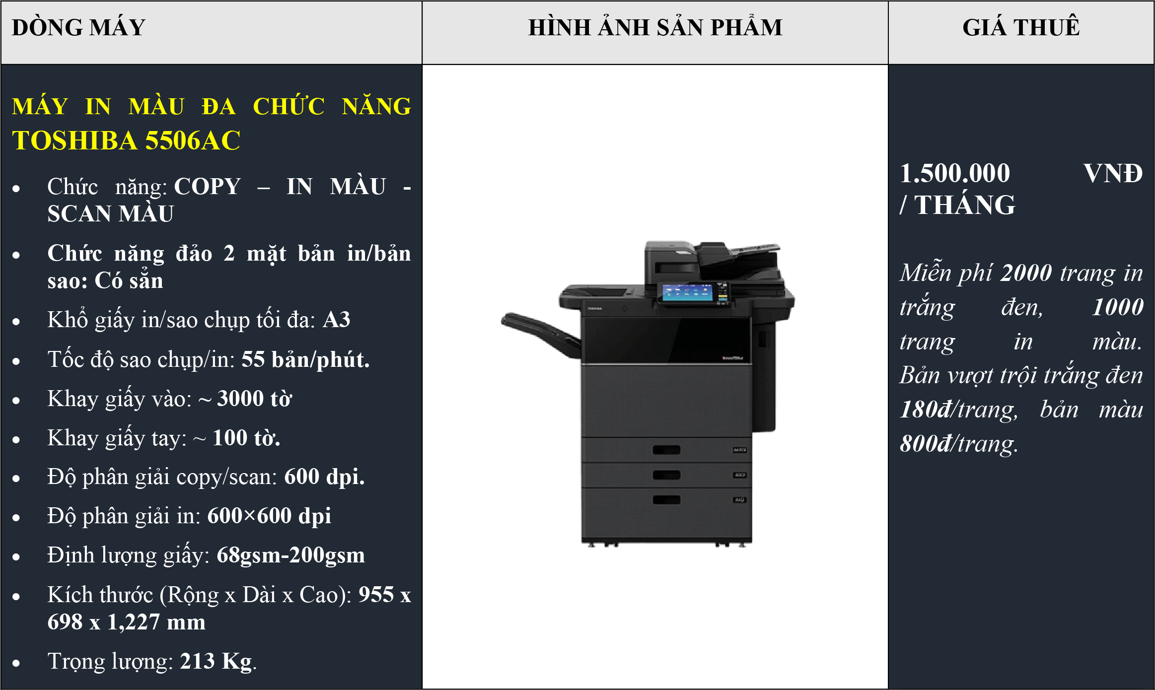 Cho Thuê Máy Photocopy Trắng Đen Toshiba 5518a