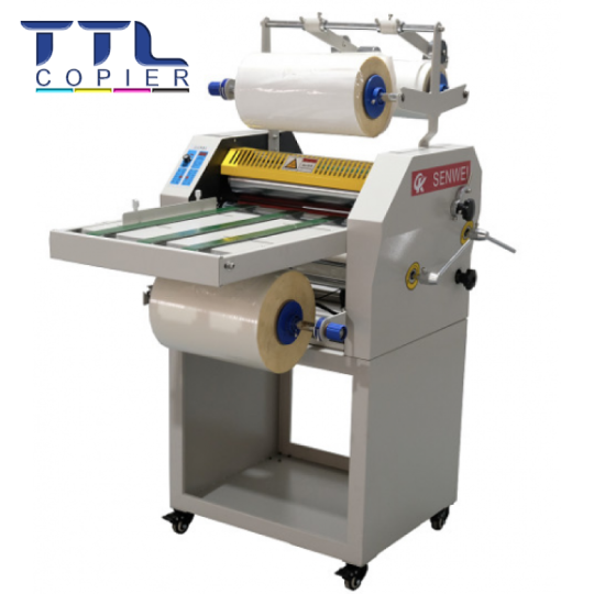 Máy có thể cán được màng nhiệt bóng, màng mờ, màng mỏng hoặc dày, phù hợp với giấy A4, A3, A3+ và nhiều định lượng giấy khác nhau – cực kỳ linh hoạt cho mọi nhu cầu in ấn.