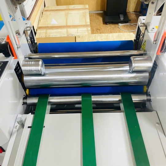 Băng chuyền kéo giấy hỗ trợ đưa tài liệu vào máy tự động, tăng độ chính xác và liên tục khi ép nhiều tờ cùng lúc.
