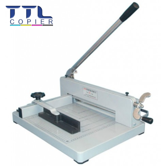 Cơ chế cắt: Sử dụng cơ chế tay gạt (dao dập) mạnh mẽ, có trợ lực để giúp người dùng giảm bớt sức lực khi cắt chồng giấy dày.
