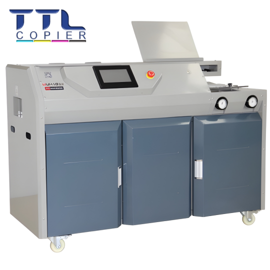 Chất lượng đóng gáy chuyên nghiệp: Với hệ thống dao phay hiện đại và công nghệ keo nóng chảy, máy tạo ra những cuốn sách có gáy sách phẳng, đẹp mắt và độ bền cao.