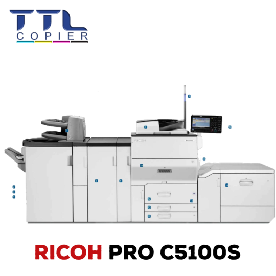 Ricoh Pro C5100s là dòng máy photocopy màu kỹ thuật số cao cấp của Ricoh, được thiết kế cho doanh nghiệp in nhanh, xưởng in thương mại và văn phòng có nhu cầu in ấn chuyên nghiệp.