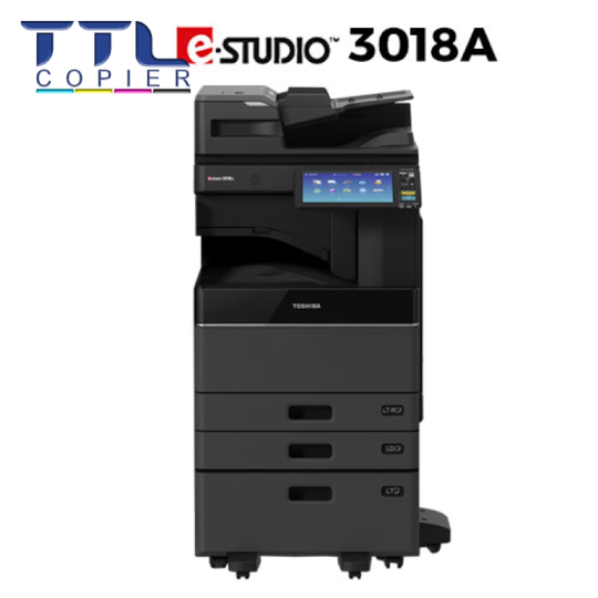 Toshiba e-STUDIO 3018A là dòng máy đa chức năng đơn sắc (đen trắng) thuộc phân khúc văn phòng vừa và nhỏ, nổi bật với độ bền cao, thao tác thân thiện và khả năng tiết kiệm điện năng vượt trội.