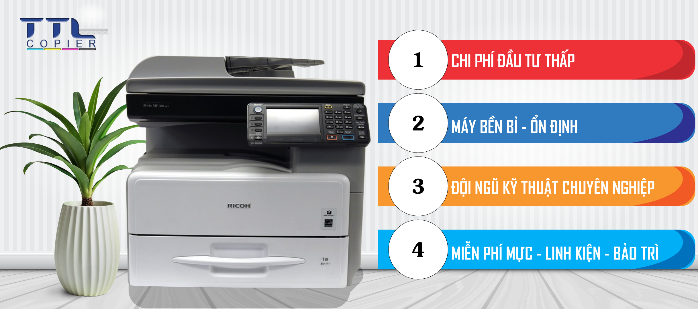 Thay vì mua máy mới, bạn chỉ cần thuê máy photocopy Ricoh MP 301SPF tại TTL Copier Việt Nam – một dịch vụ trọn gói bao gồm: