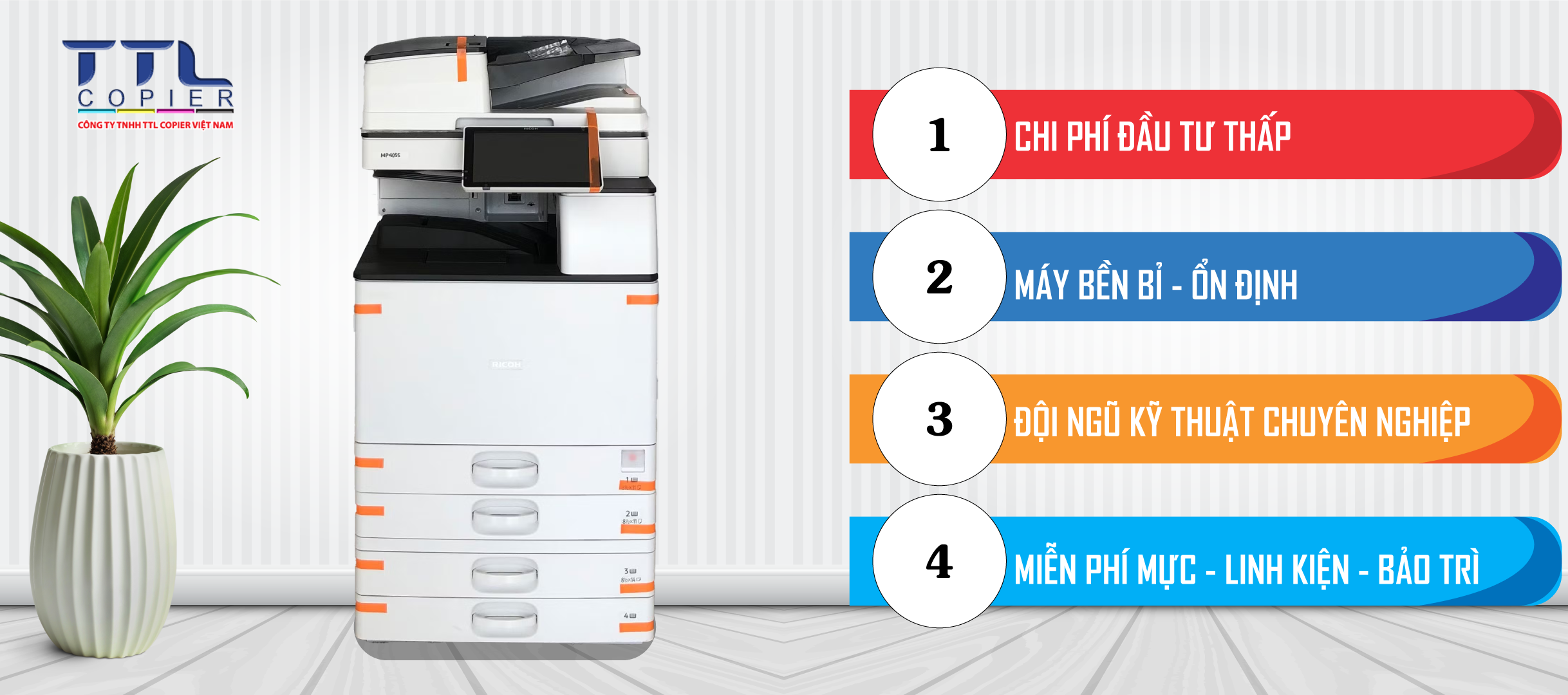 Giải pháp thuê máy photocopy Ricoh MP 4055 tại TTL Copier giúp bạn tiết kiệm đến 70–80% chi phí mà vẫn đảm bảo tốc độ và chất lượng in chuyên nghiệp.