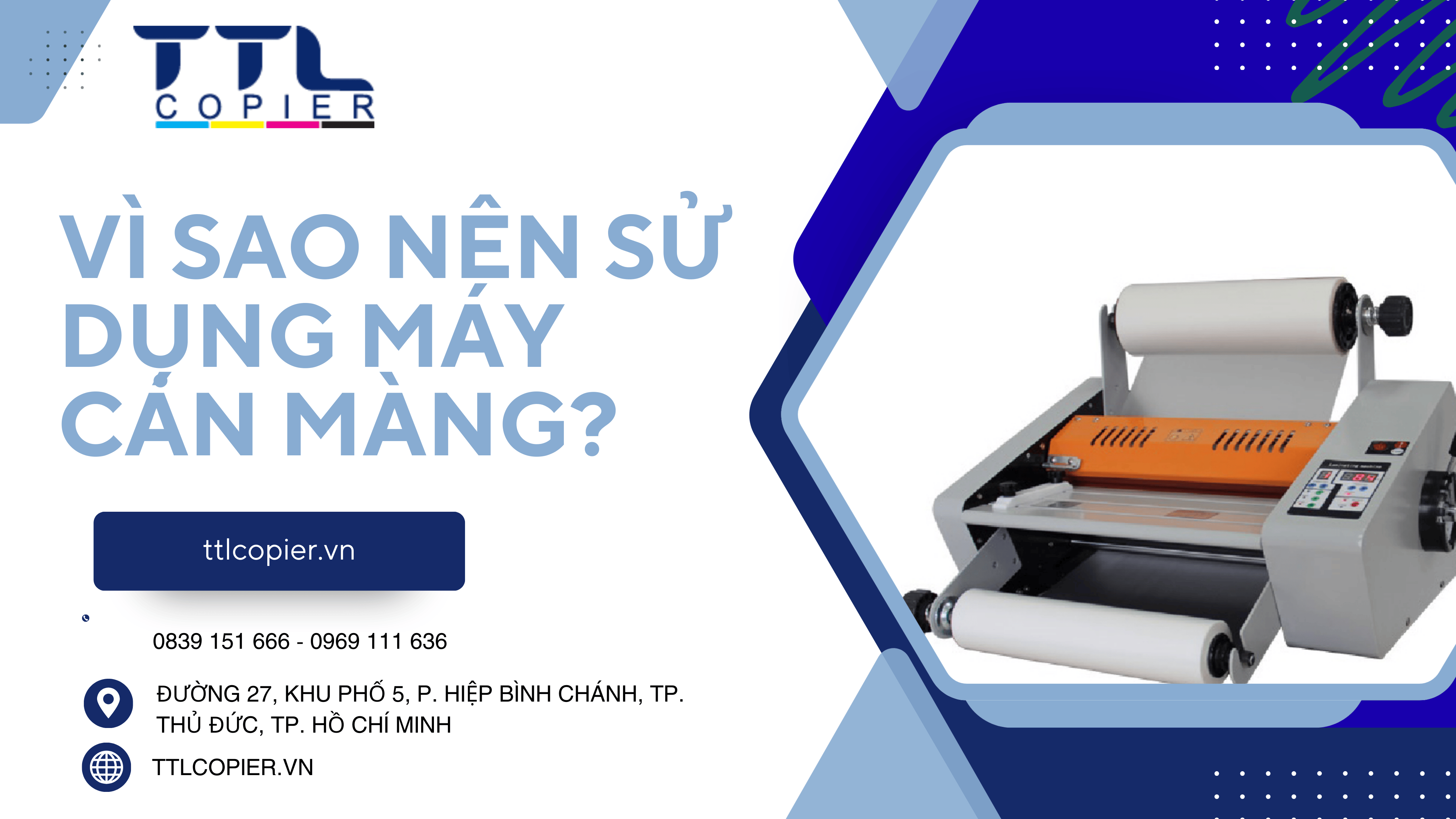 Máy cán màng là thiết bị không thể thiếu trong ngành in ấn và sản xuất bao bì hiện đại. Nó giúp sản phẩm trở nên đẹp, bền và giá trị hơn. Nếu bạn đang tìm kiếm máy cán màng tại TPHCM, hãy liên hệ TTL Copier – đơn vị chuyên cung cấp và sửa chữa máy cán màng uy tín, giá tốt, dịch vụ hậu mãi tận tâm.
